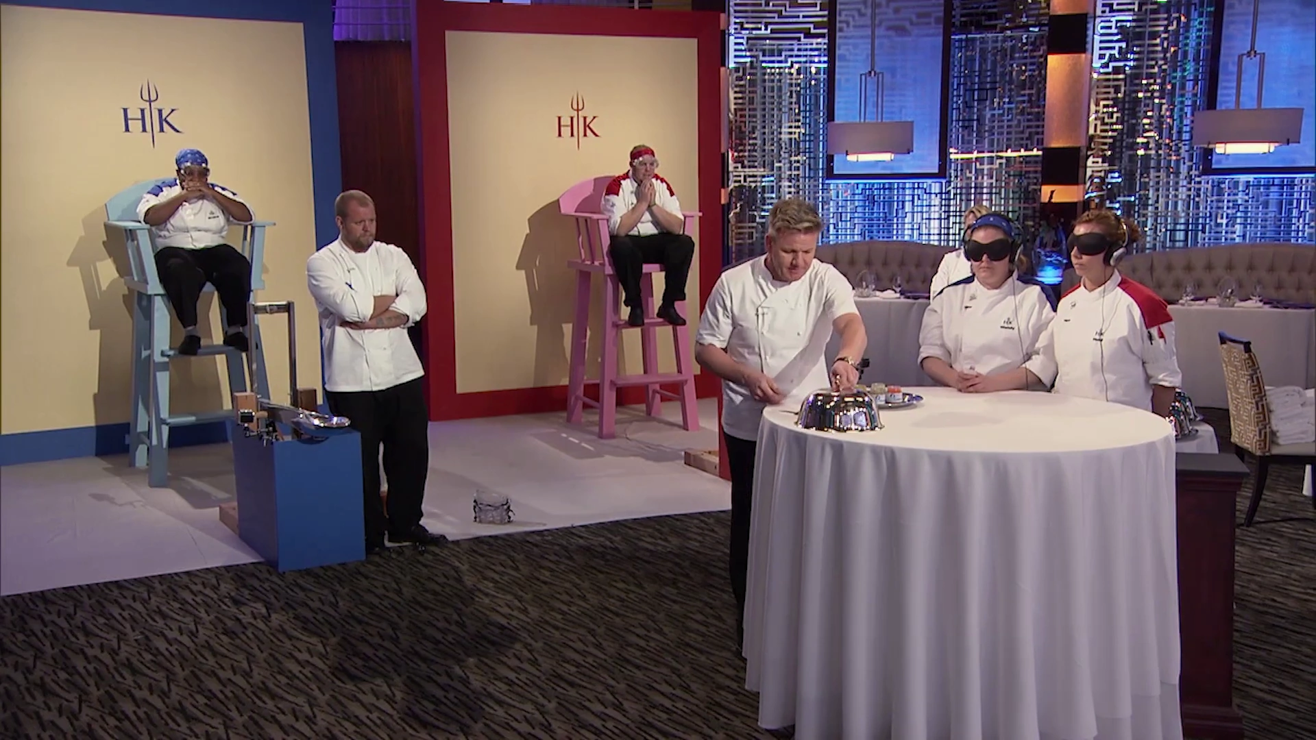 | Episode Rundown: A red chef joined the blue team, sliders were the main dish, both teams had terrible performances at dinner service, and a shocking double elimination took place. | ||||